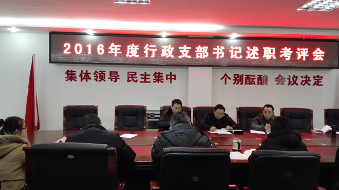 按照会议议程,首先进行了支部书记“一述三评”活动,向珏同志代表行政支部班子及本人在会上进行公开述职,围绕考评内容和标准,认真总结了2016年党建工作履职情况,对2016年行政支部及支部书记个人工作成绩、主要问题及原因分析进行了深入总结,并就2017年的工作思路和具体措施向与会领导和党员进行了汇报。参会代表对向珏同志的述职给予了充分肯定,认为工作总结是事实求是的。李锦校长对向珏同志的述职进行了点评,指出:向珏同志的述职客观准确。行政支部班子团结,有凝聚力;2016年“两学一做”活动开展扎实;支部换届选举风清气正;组织生活会敢于逗真碰硬。同时,李锦校长也指出了支部工作中存在的不足,希望行政支部要进一步丰富支部活动,创新活动方式,加强组织建设工作,推动新党员发展工作。随后,参会党员及群众代表对向珏同志德、能、勤、绩、廉五个方面按优秀、称职、基本称职、不称职四个档次进行了评价。最后,向珏同志表态发言,表示要在学校党委的领导下,团结支部班子成员,扎实开展工作,弥补工作中的不足,创新工作方式。