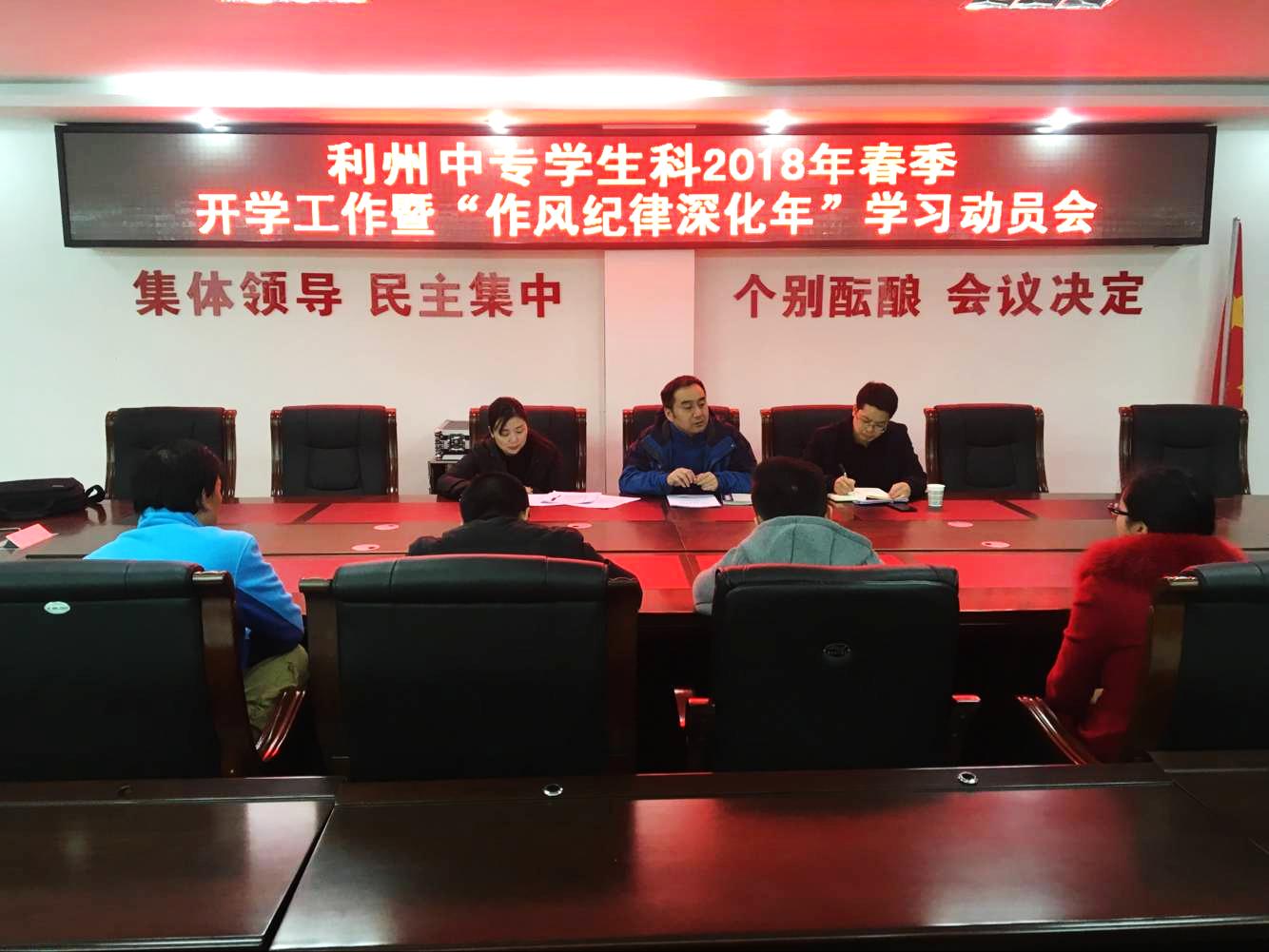 2月26日上午,在新学期即将开学之际,学生科、校团委组织召开了2018年春季开学工作暨“作风纪律深化年”学习动员会,学生科、校团委全体同志参加了会议,会议由贾相成副校长主持。