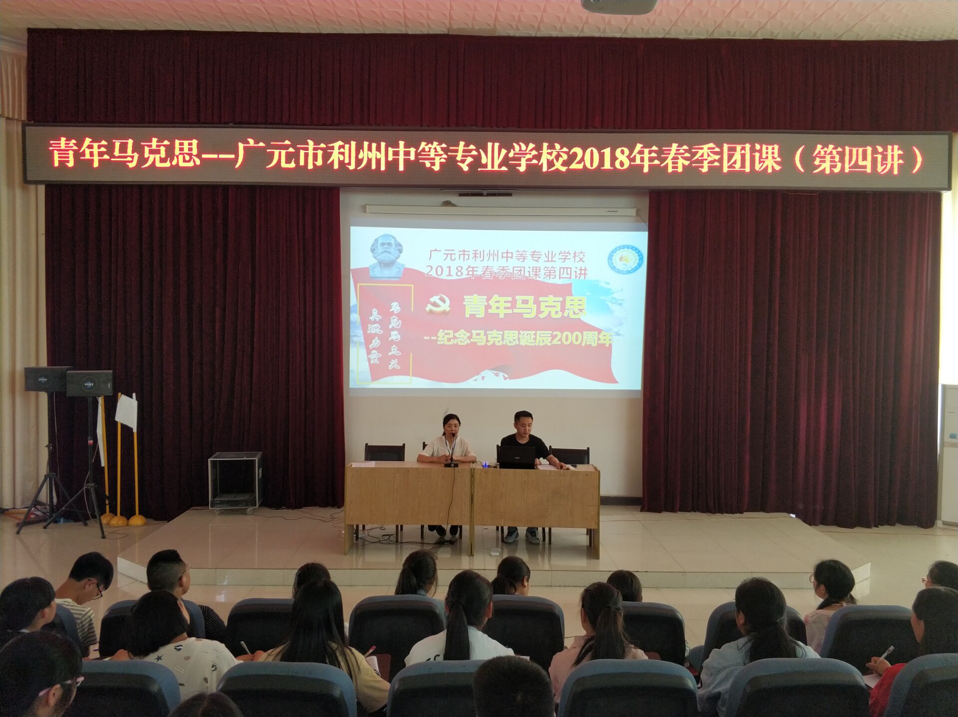 为纪念卡尔·马克思诞辰200周年,5月2日中午13点,利州中专校团委在阶梯教室举办了题为“青年马克思—纪念马克思诞辰200周年”的专题团课讲座,讲座由校团委何梁老师主讲,2018年春季团校100余学员参加了学习。