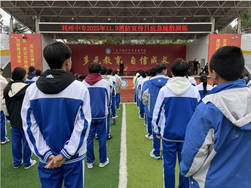2025年11月7日上午9时50分,广元市利州中等专业学校组织全体师生开展了一场紧张有序的“119”消防宣传日应急疏散演练。