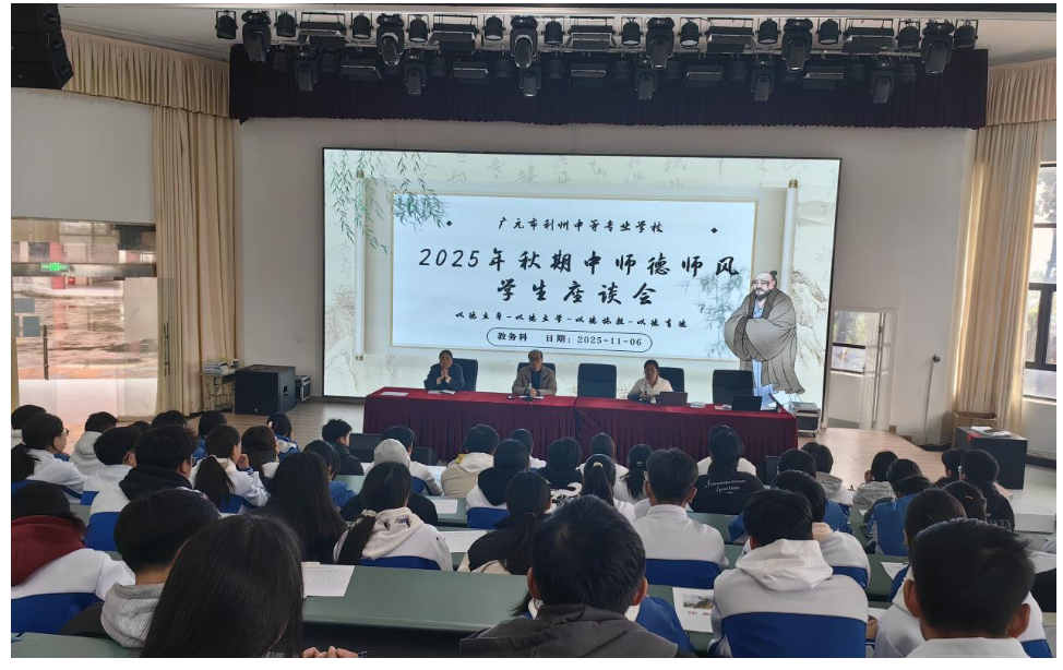 11月6日,利州中专在教学楼南一楼阶梯教室召开师德师风专题座谈会,各年级组长、教务科教师代表及各班级学生代表参会。