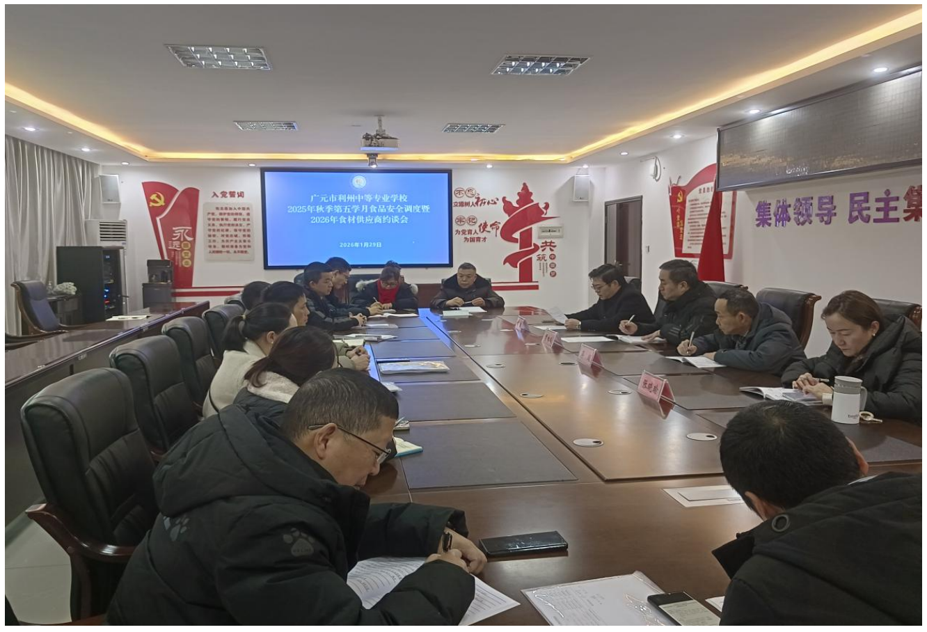 2026年1月6日上午9:30,广元市利州中等专业学校在行政楼四楼会议室召开2025年秋季第四学月食品安全工作调度会。