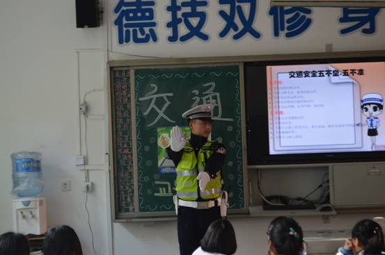 结合交通安全日,12.2日下午,全校34个班级召开“文明交通,安全出行”主题班会,同时,广元市交警一大队干警来到利州中专,走进教室,走近师生,对同学们进行交通安全宣传教育,取得良好效果。
