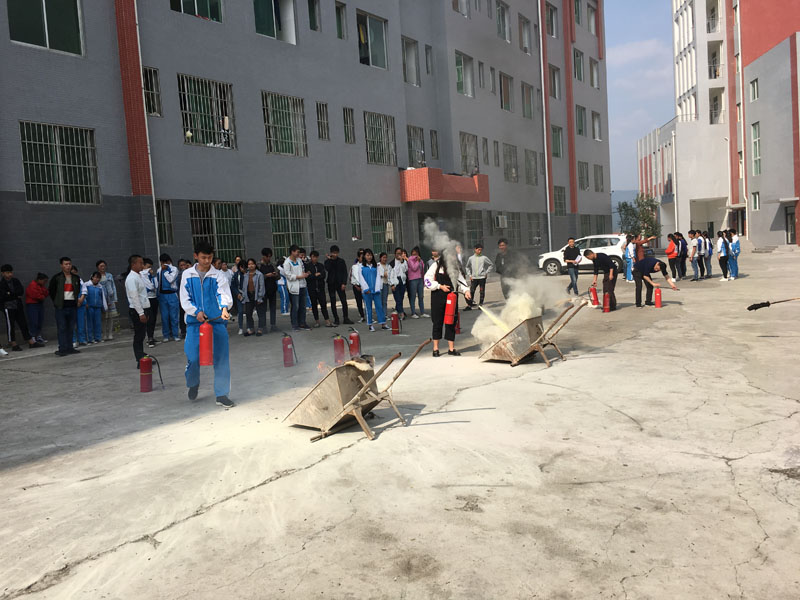 安全保卫科组织护校队、各班级安全委员进行消防安全培训及演习活动。安全保卫科的老师们向同学们讲解当面临火灾时,如何正确逃生自救知识,指导同学们如何正确使用灭火器、消防栓进行灭火。