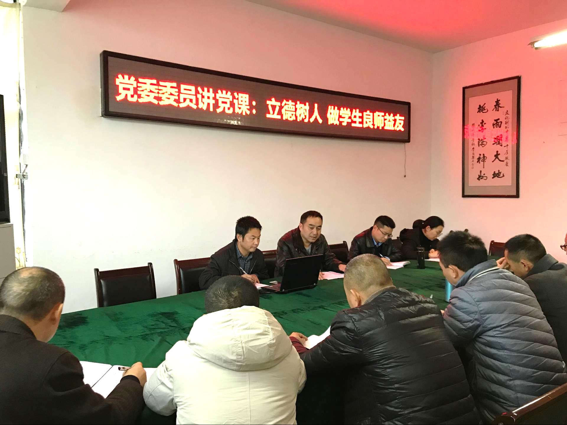 在全体党员上缴党费之后,党委委员、副校长贾相成同志做了题为“立德树人,做学生良师益友”的专题党课。他宣读了教育部印发的《新时代中小学教师职业行为十项准则》,并结合学校工作实际进行一一解读。他指出:教育部印发的《准则》,明确了教师职业道德规范的基本底线,是国家明确新时代教师职业规范,深化师德师风建设,塑造教师美好形象的重要举措。他要求与会同志要以高度的政治觉悟,不断加强学习,提高自身政治思想素质和教育教学能力,提升师德师风水平,规范自身教育教学行为,自觉增强立德树人、教书育人道德的荣誉感和责任感,做习近平总书记所倡导的有理想信念、有道德情操、有扎实学识、有仁爱之心、人民满意的“四有”好老师。