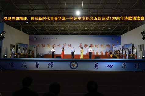 为深入学习宣传贯彻习近平新时代中国特色社会主义思想,激励和弘扬以爱国主义为核心的伟大民族精神,进一步推动“青春心向党・建功新时代”主题宣传教育实践活动,5月22日20:00,利州中专在田径场隆重举行以“弘扬五四精神、续写新时代青春华章”为主题的纪念五四运动100周年诗歌诵读晚会。学校党委杜建新书记、赵刚副校长、贾相成副校长、苏克难副校长及全体中层干部出席活动,与2000余名师生共同观看了诵读晚会。