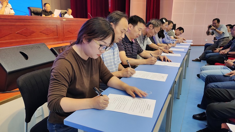 随后,赵刚副校长带领全体教职员工学习了《中华人民共和国教师法》、《中华人民共和国未成年人保护法》,认真解读了教育部《中小学生教师教育惩戒规则(征求意见稿)》和《广元市利州中专学校师德师风(修订)方案》。全体教师签订了师德师风建设目标责任书。