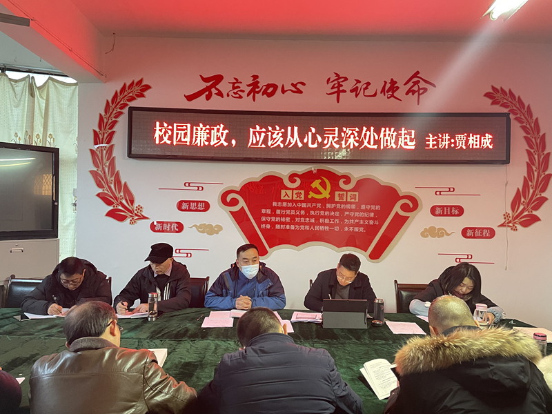 学校党委委员贾相成同志为支部成员带来一堂名为《校园廉政应该从心灵深处》廉政党课。他从三个方面进行讲述,一是廉政,应从娃娃抓起;二是打铁还要自身硬;三是校园廉政建设是一场“持久战”。“铭于心,形于外”、“行由心生”,校园廉政要从心灵深处抓起,只有我们内心廉政了,才能确保自己廉政的一言一行!