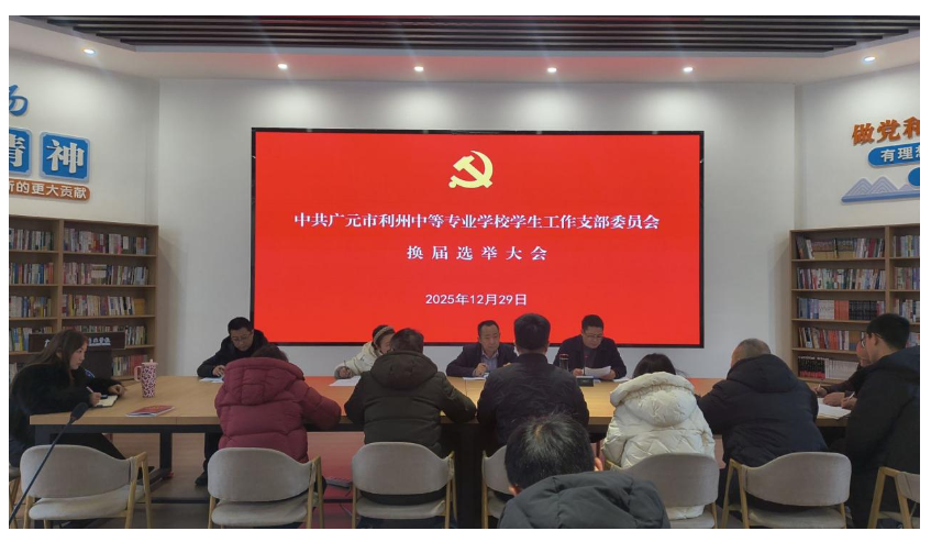 按照《中国共产党章程》《中国共产党基层组织选举工作条例》及学校党委《2025年党支部换届选举工作方案》(广利中专党委〔2025〕42号)相关规定,经学校党委批准,12月29日下午,利州中专学生工作党支部召开党员大会,圆满完成换届选举工作。