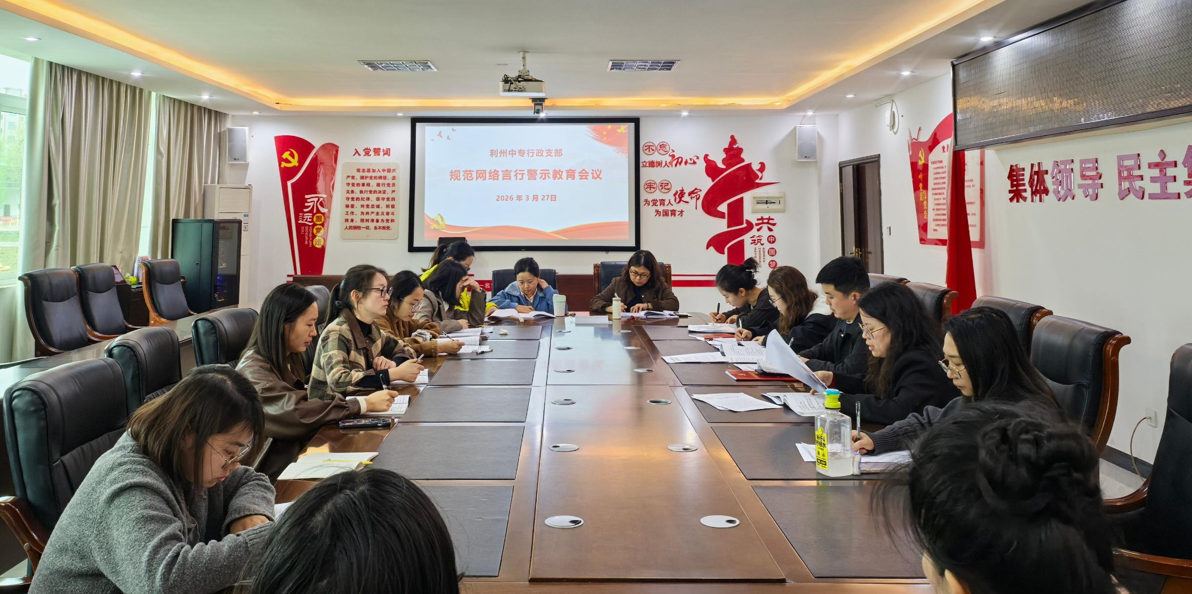 为进一步强化支部党员及教职工纪律意识、规矩意识,筑牢网络行为思想防线,坚决杜绝网络违纪违规行为发生,营造风清气正的网络空间与校园环境,3月27日,行政支部组织召开规范网络言行警示教育专题会议。支部全体党员、相关科室教职工参加会议,会议由支部书记熊新兵主持,挂联领导向珏参加会议。