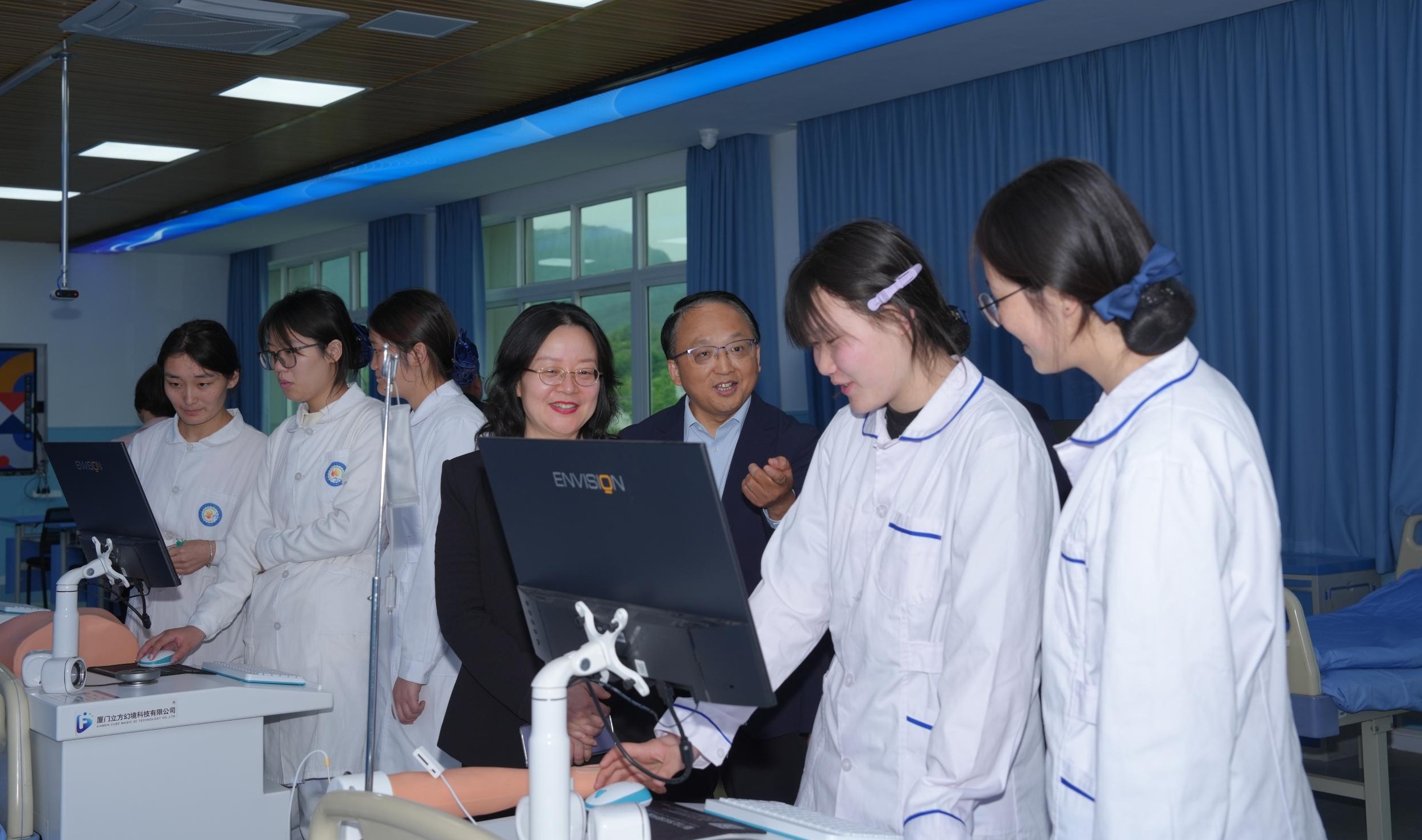 考察过程中,赵刚书记详细汇报了我校办学理念、专业布局、人才培养、实训基地建设及育人成效,结合中职教育办学实际,就专业内涵建设、实训管理提质等关键问题,主动与考察组交流探讨,虚心倾听宝贵意见。考察组一行充分肯定了我校在办学中取得的成果,也对两校长期以来深化合作、协同育人的成效给予高度认可。据悉,在职业教育贯通培养政策指引下,两校已深度携手,联合开设“3+2”“5+0”五年制高职护理专业贯通培养项目,通过专业共建、资源共享、教学共管,构建起一体化协同育人体系,累计培养优秀护理专业学生近800人,为区域医疗卫生事业高质量发展输送了大批高素质技术技能人才。
