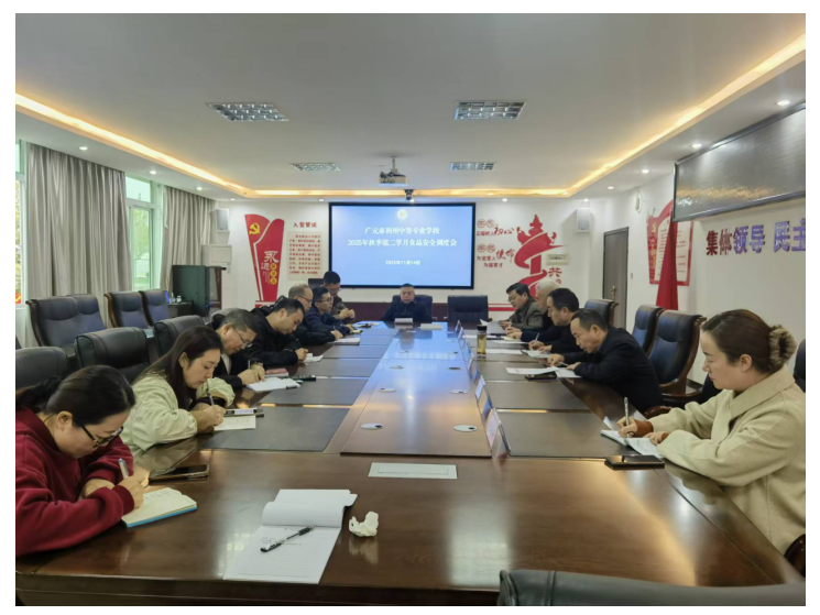 2025年11月14日上午,广元市利州中等专业学校在行政楼四楼会议室顺利召开了2025年秋季学期第二学月食品安全调度会。
